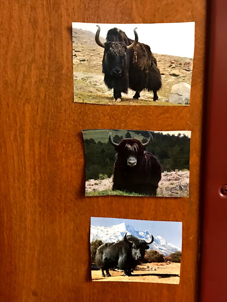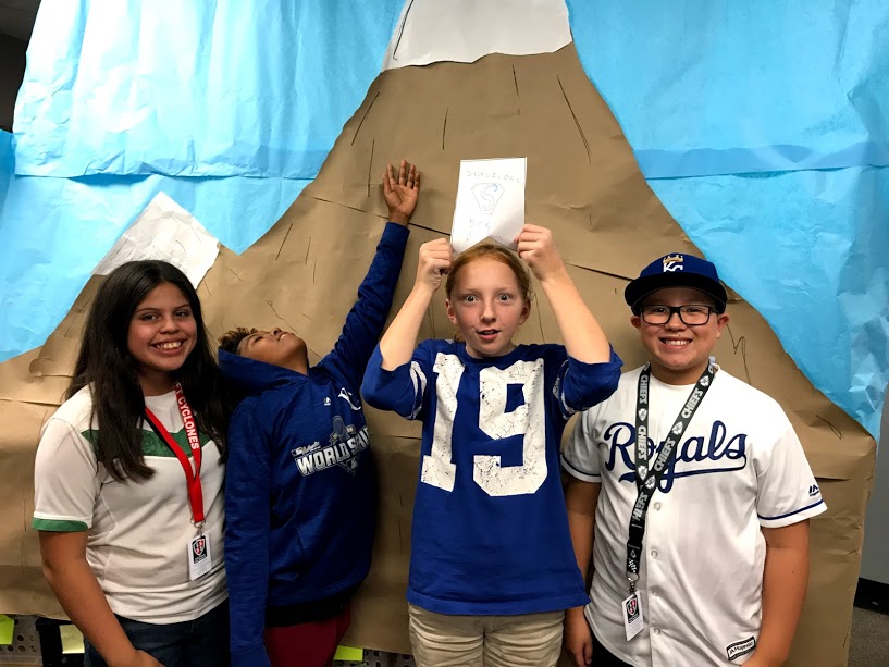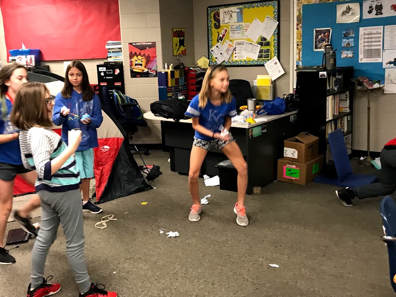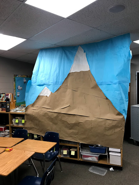 After school the classroom transformation took place. To begin I put half of my desks in my reading corner (I told my students that corner was off limits because of a rockslide). This freed up a lot of my room for the students to set up their “camp sites.” Then I created a giant mountain out of construction paper. I also hung up some pictures of yaks and turned a couple of coffee thermoses into oxygen tanks (it’s the details that make the day fun). Finally, I created a mountain on my classroom door.