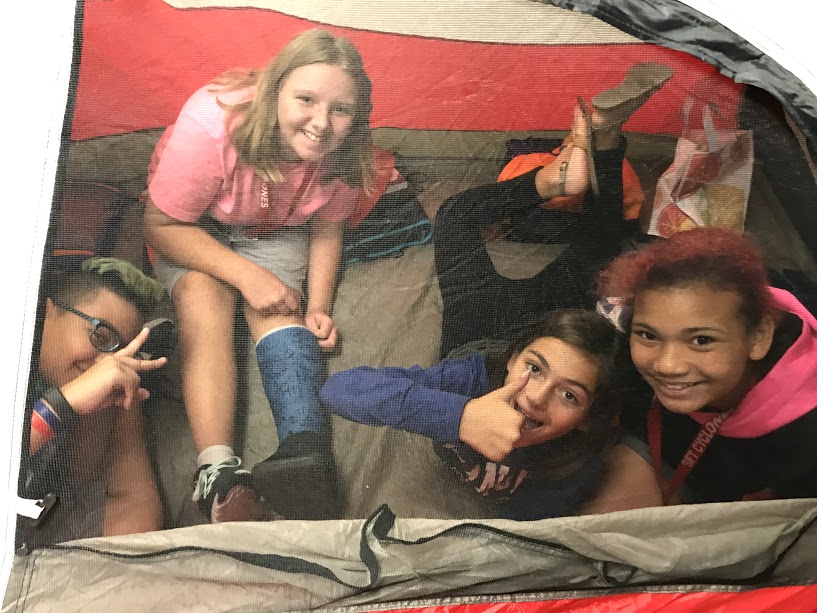 The kids spent the rest of the hour reading the next chapter in the book at their camp site.
