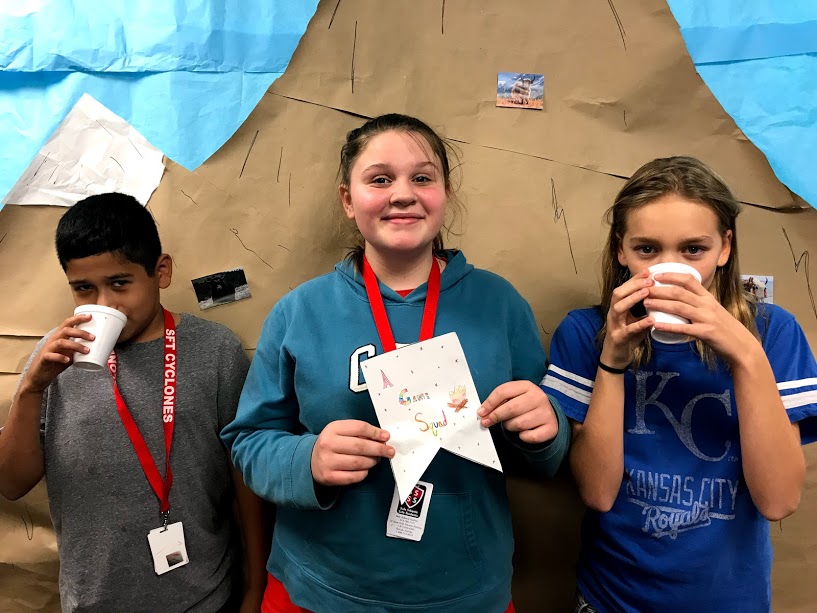 While they worked on their banners I let them come over and get some hot tea to “warm up” like they do in the book. Many had never tried hot tea before. I let them add sweetener and honey to it. We also did a mini-lesson on appropriate responses when someone offers you a gift (only two responses: thank you or no thank you).