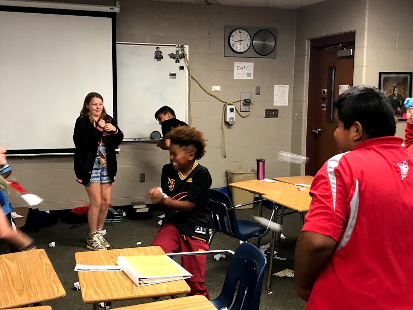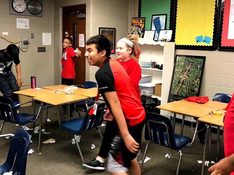 The hardest part about the day is cleanup. This year I came up with a solution. To begin I let my homeroom students have a snowball fight with the paper snow on the ground. They loved it. Then I let them play paper basketball with the paper snow into the trash cans. It was great. They were having fun and cleaning at the same time. Finally, I bribed them with some more hot tea to help me reorganize my desks.
